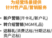 提供包含營(yíng)銷策劃 / 技術(shù)開(kāi)發(fā) / 運(yùn)營(yíng)管理 / 產(chǎn)品供應(yīng) / 售后服務(wù)的全鏈條服務(wù)支撐營(yíng)銷禮品